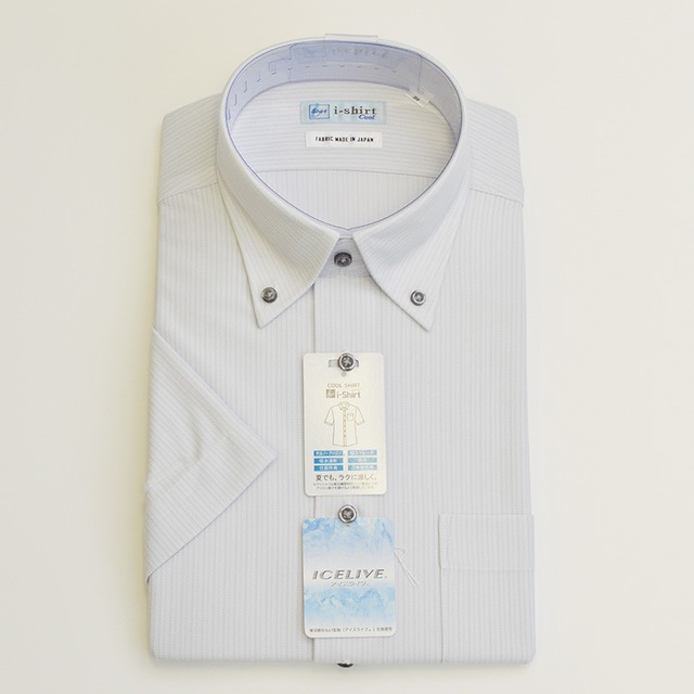 【半袖】完全ノーアイロン|ワイシャツ|i-Shirt|レギュラーシルエット|L.グレー|ボタンダウン|ストライプ