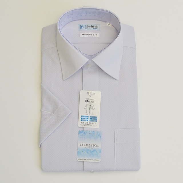 【半袖】完全ノーアイロン|ワイシャツ|i-Shirt|レギュラーシルエット|ラベンダー|セミワイドカラー|ドビー
