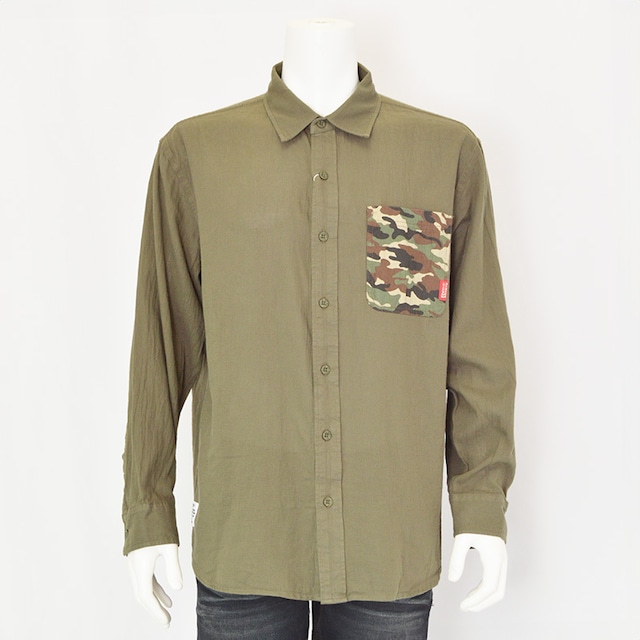 【大きいサイズ】|RED BERETS|レッドベレー|パナマ織迷彩ポケットシャツ|カーキー