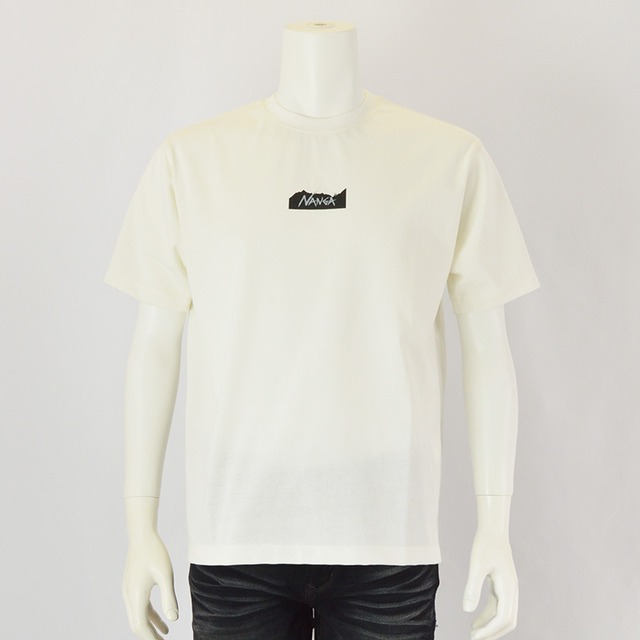 NANGA |ナンガ|エコハイブリッド ボックスロゴ エンブロイダリーTシャツ|(メンズ)|ホワイト(ロゴ緑)