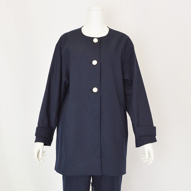 ANNALUNA |アンナルナ|ゴールドボタン ノーカラーロングコート|レディース|ネイビー