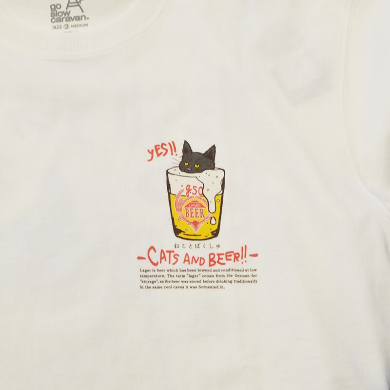 go slow caravan |ゴースローキャラバン|RAY綿 猫と麦酒TEE~麦酒風呂2~|ユニセックス|ホワイト