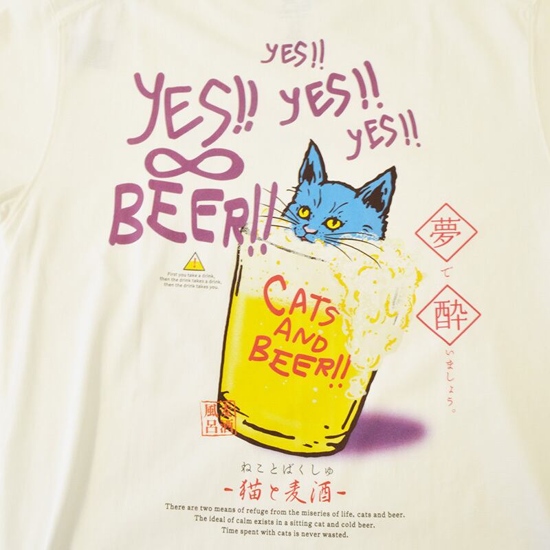 猫とビール好きには是非ともゲットしてもらいたい1枚。さらっとドライタッチでビールが美味しい季節におススメのベーシックシルエットT