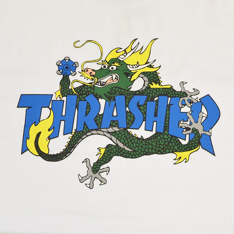 【大きいサイズ】|THRASHER|スラッシャー|Dragon半袖Tシャツ|ホワイト