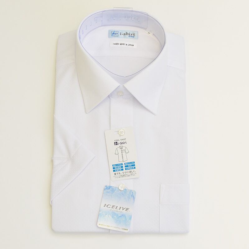 【半袖】完全ノーアイロン|ワイシャツ|i-Shirt|レギュラーシルエット|ホワイト|セミワイドカラー|ドビー