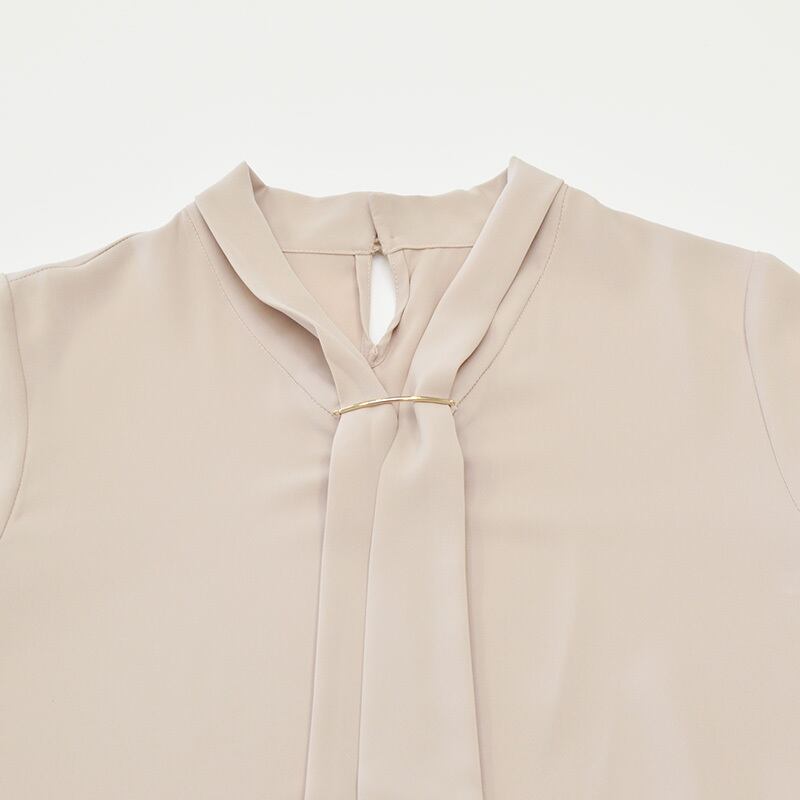 WHITE JOOLA|ホワイトジョーラ|【接触冷感】とろみデシン・ボウタイデザインフレア半袖ブラウス|レディース|ベージュ