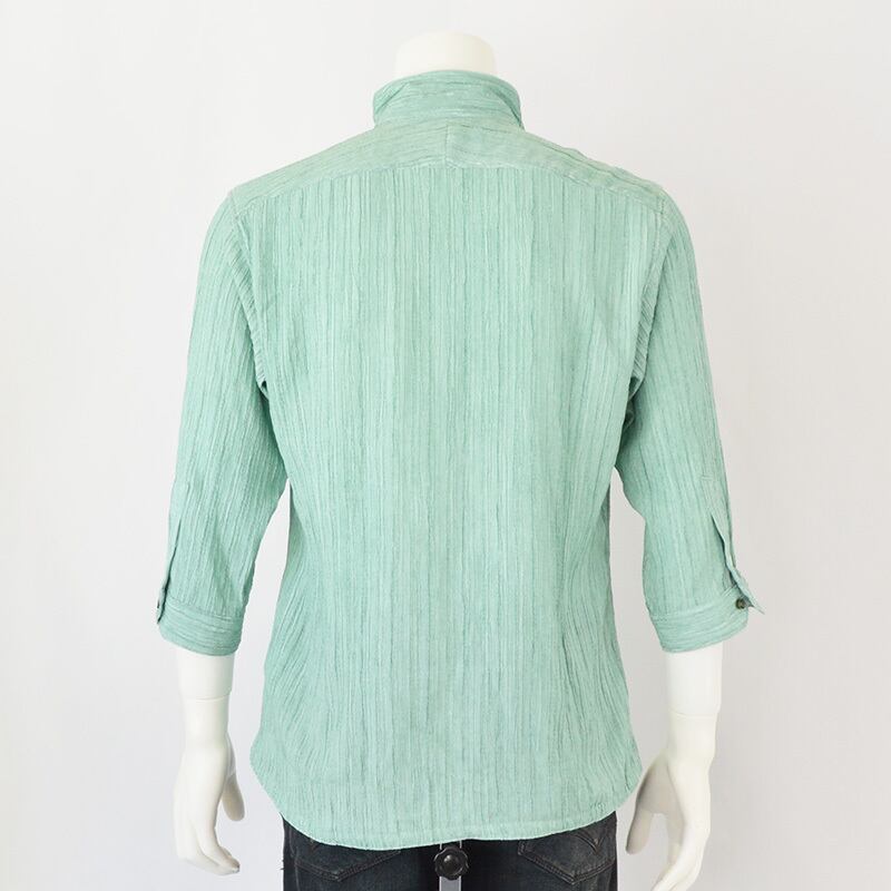 NICOLE CLUB FOR MEN|ニコルクラブフォーメン|カラープリーツ7分袖スタンドカラーシャツ|P.グリーン