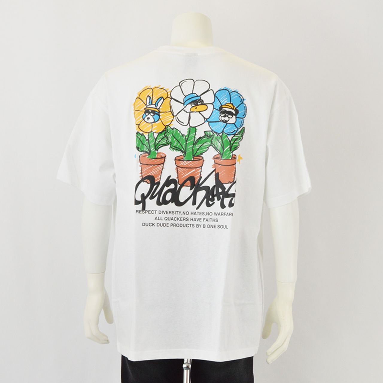 【大きいサイズ】|b-one-soul|ビーワンソウル|DUCK DUDEフラワークレヨン半袖Tシャツ|ホワイト