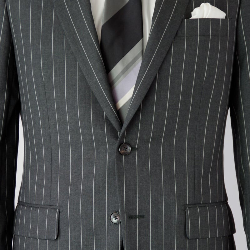 【数量限定|特別価格】|ストーベル&メイソン|葛利毛織社製生地使用|2Bスーツ|レド・グレイ|ピン・ストライプ