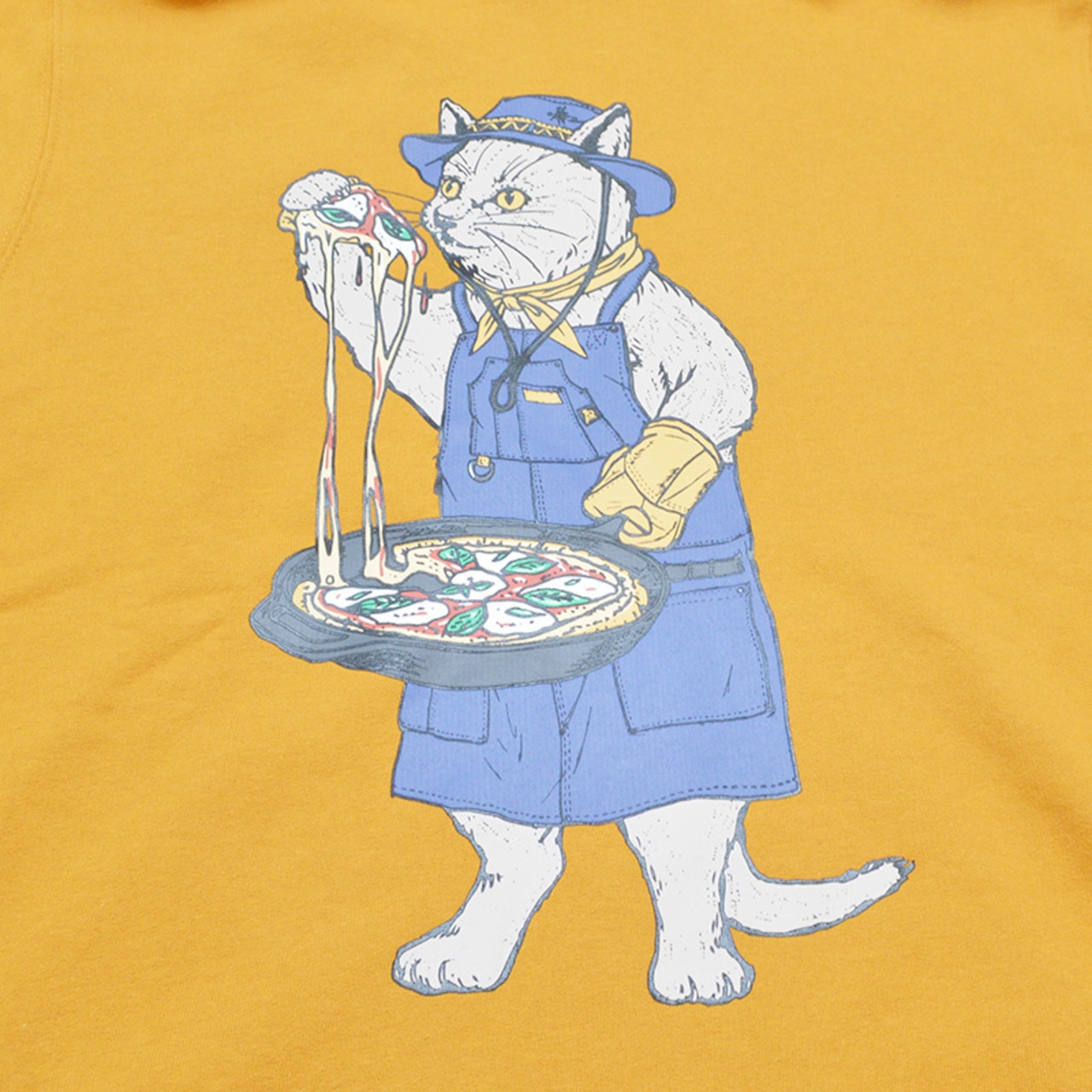 go slow caravan |ゴースローキャラバン|空紡糸裏毛 スキレットピザ猫 ヘムスピンドルフーディー (MENS/WOMENS)|ブラウン系