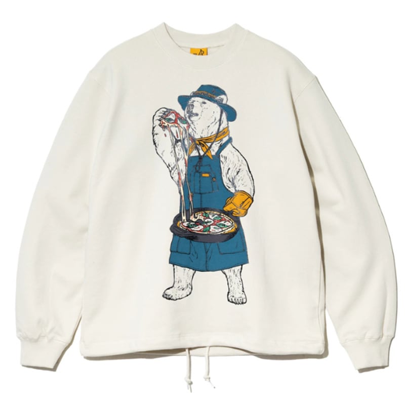 go slow caravan ゴースローキャラバン|空紡糸裏毛 スキレットピザクマ ヘムスピンドルクルースウェット|ユニセックス 352606 オフホワイト