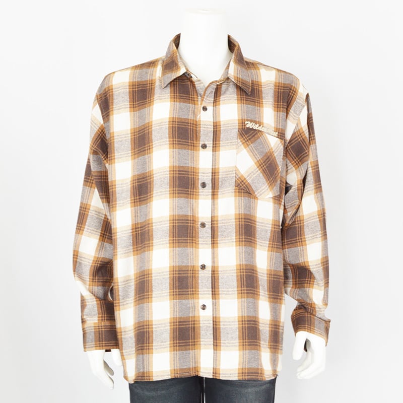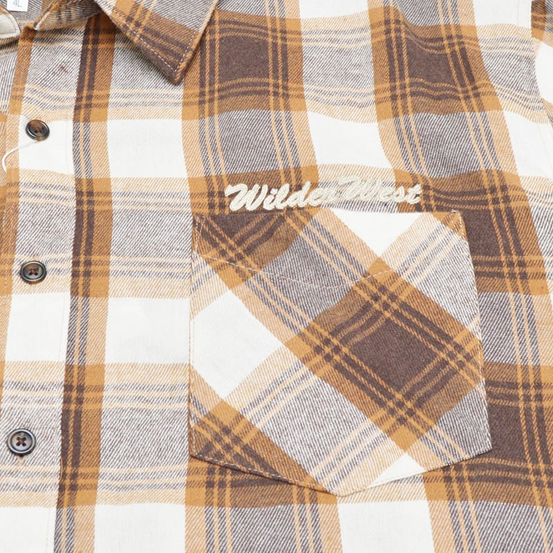 【大きいサイズ】|WILDER&WEST|ワイルダーアンドウエスト|チェック柄チェーン刺繍シャツ|ブラウン