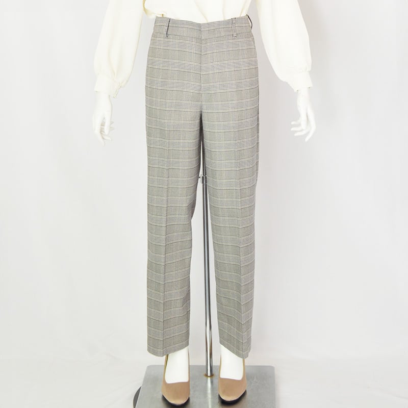 WHITE JOOLA|ホワイトジョーラ|トラッドチェック・センタープレスストレートパンツ|レディース|グレー系