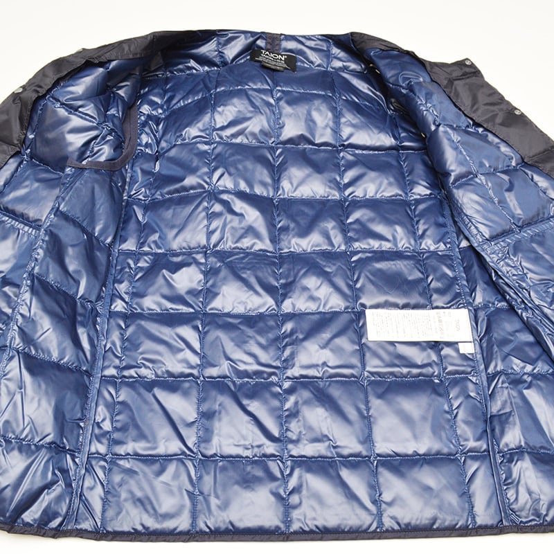 TAIONの定番、ベーシックインナーダウンは、ジャケットやコートの下に着るのはもちろん、Tシャツ・シャツ・パーカーなどの上にも気軽に羽織れる、軽くて暖かく着回しやすいシンプルなデザインが特徴です。