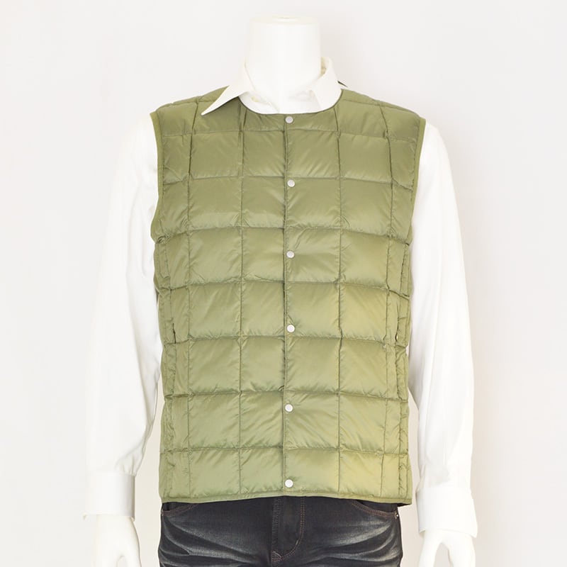 TAION|タイオン|ベーシック クルーネックボタン インナーダウンベスト|M.グリーン