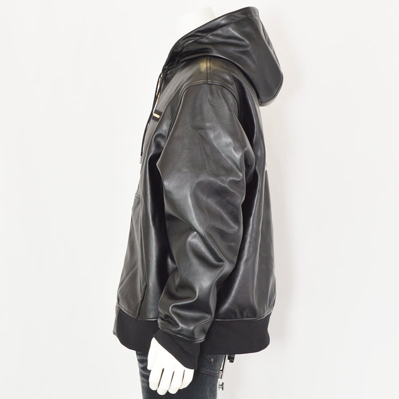 上質なツヤ感と存在感を放つフェイクレザーZIPフーディ。