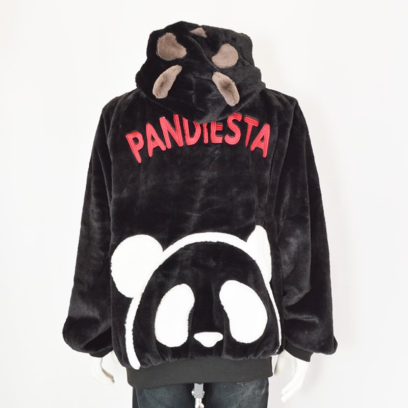 【大きいサイズ】|PANDIESTA JAPAN|パンダアイコンフェイクファーパーカー|ブラック