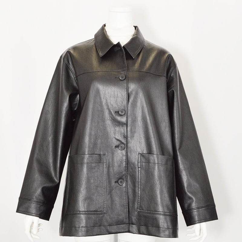 長めの丈感が今年らしいフェイクレザージャケット。