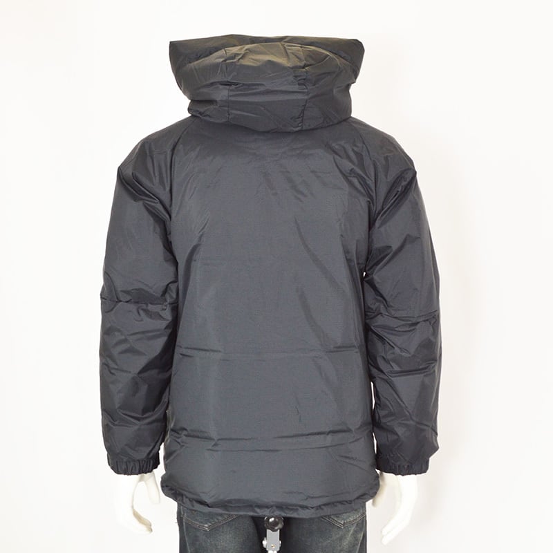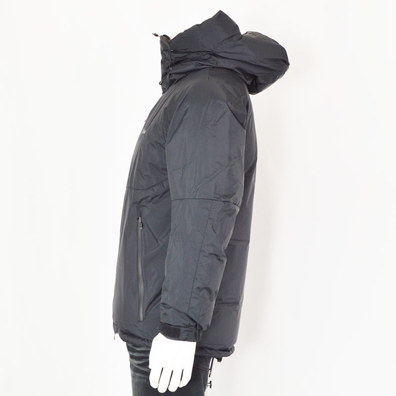 フロントには止水ファスナーを採用し、冷たい風や雨の侵入をブロック。袖口のアジャスターと裾のドローコードでフィット感を調整でき、冷気の侵入をさらに防ぎます。ネックまで覆う高めのフードは首元を暖かくキープし、ドローコードで調整可能です。