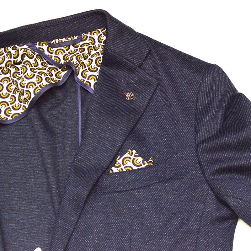 オーセンティックなデザインのジャケットを、豊かな表情と深みある色柄といったひとさじの趣でモダンに演出。
