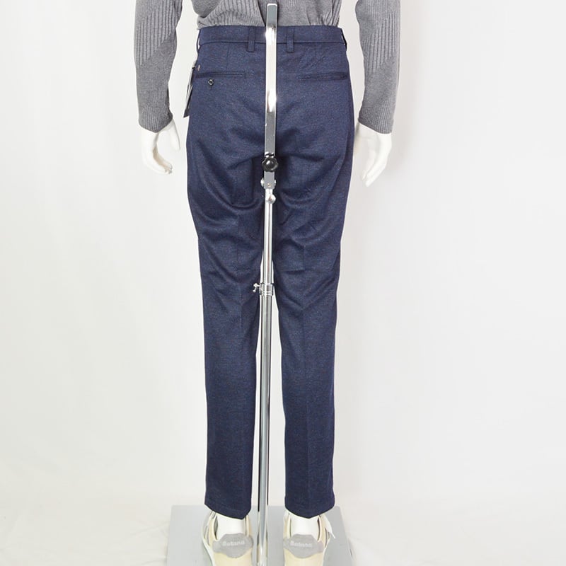ほど良い肉厚感のウール混素材で、高級感と大人の品ある表情でありながら、体に沿って伸縮する快適な着心地を併せ持ったパンツです。