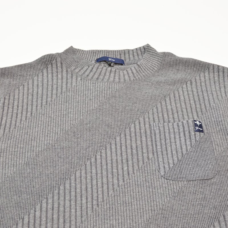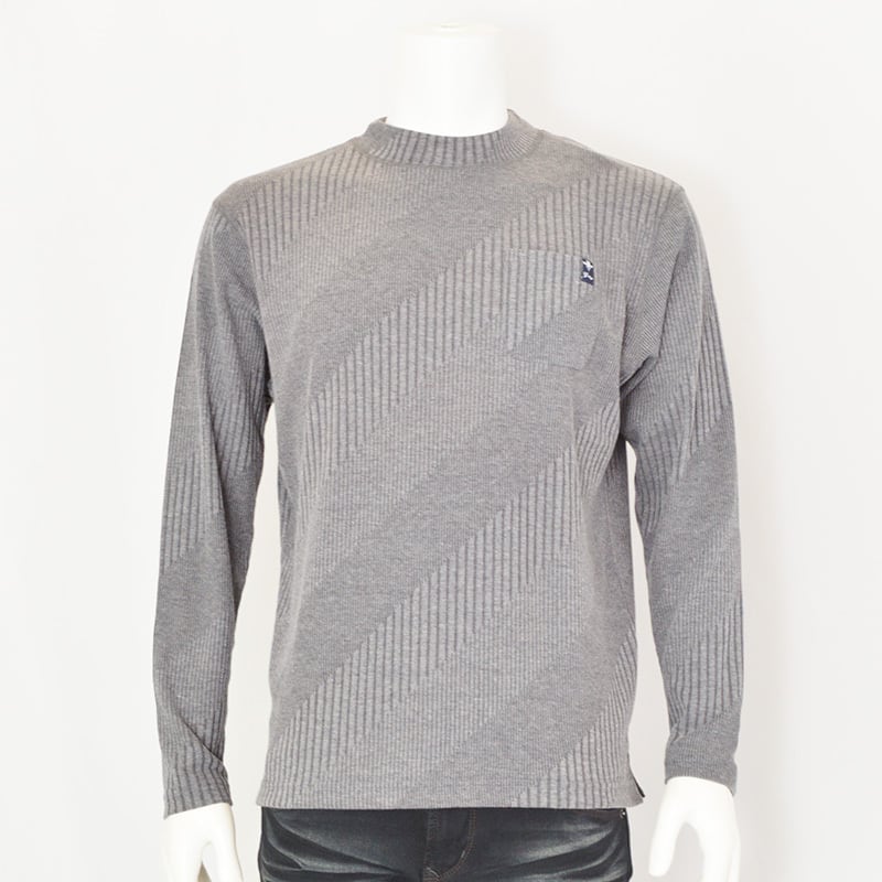 G-stage|ジーステージ|カットソー モックネック 長袖 マルチ切り替え ジャガード ロンT 無地|L.グレー
