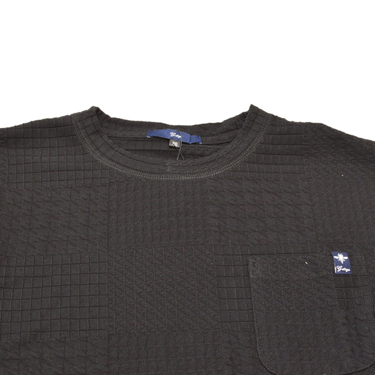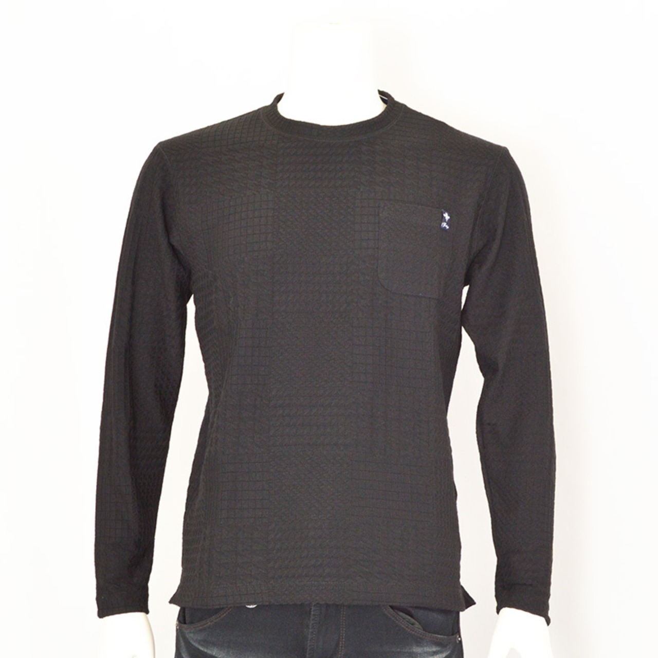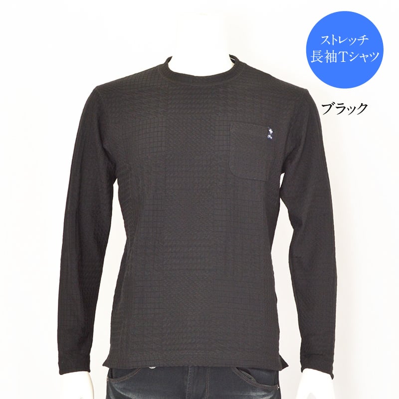 G-stage|ジーステージ|ロンT クルーネック ストレッチ パッチワークジャガード カットソー|ブラック