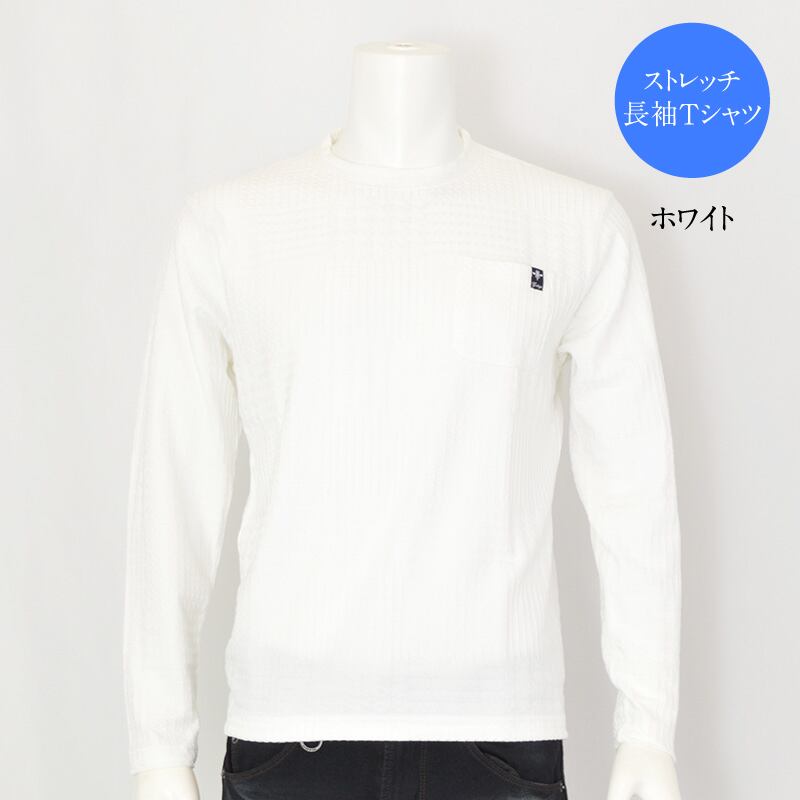 G-stage|ジーステージ|ロンT クルーネック ストレッチ パッチワークジャガード カットソー|ホワイト