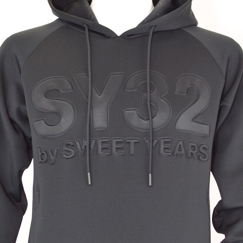 SY32 by SWEET YEARS|エスワイサーティトゥー バイ スウィートイヤーズ|DOUBLE KNIT EMBOSS GEOMETRY P/O HOODIE|メンズ|ブラック