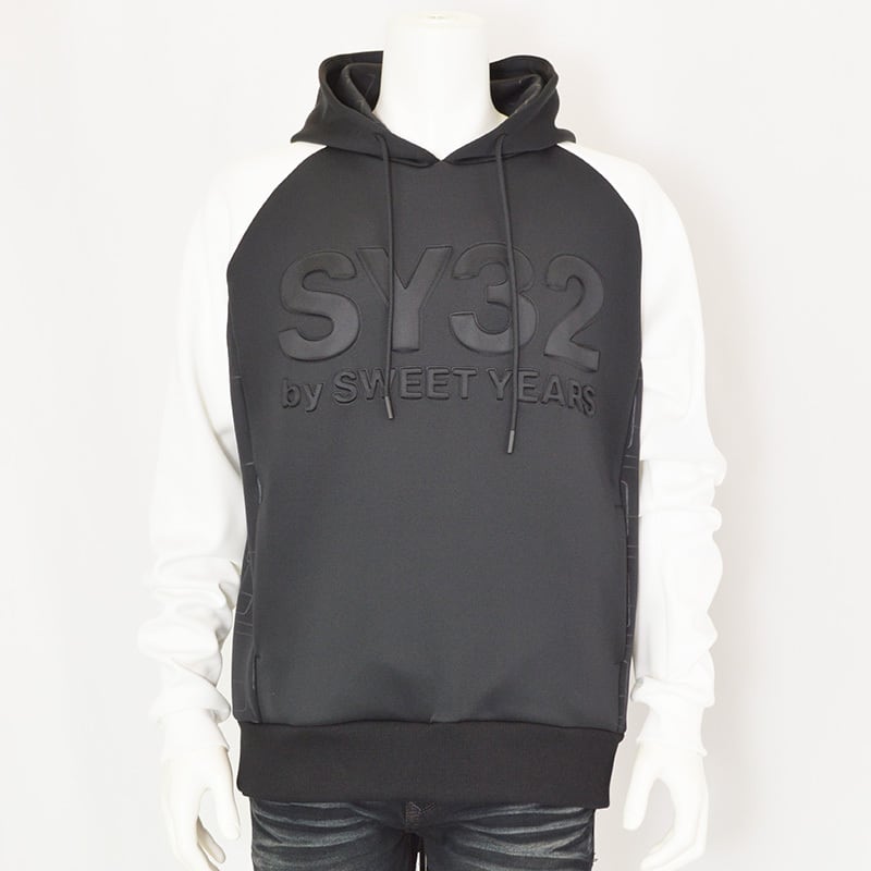 SY32 by SWEET YEARS|エスワイサーティトゥー バイ スウィートイヤーズ|DOUBLE KNIT EMBOSS GEOMETRY P/O HOODIE|メンズ|クロシロ