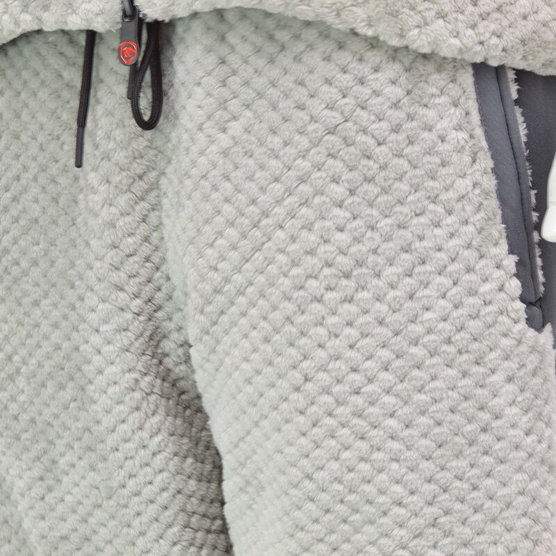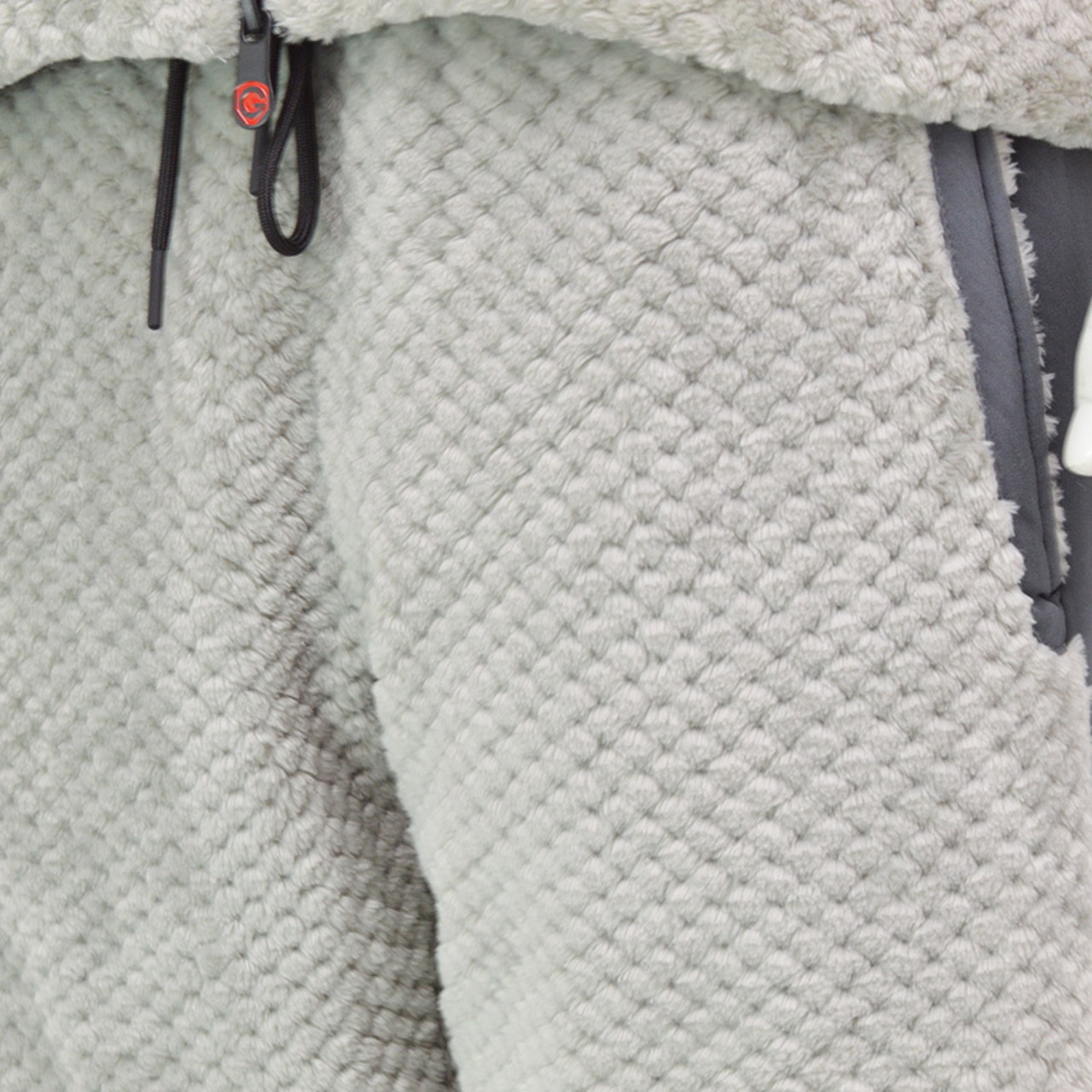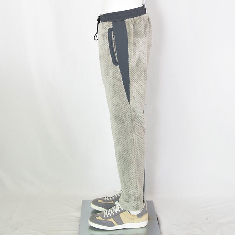 毛足の長い表面変化フリースを使用したイージーパンツ。