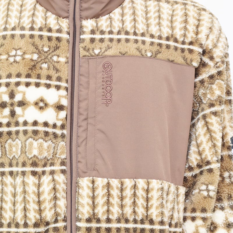 ボアフリース/胸ポケット(ファスナー有)/フルジップ/スタンドカラー/サイドポケット/ワッペン/刺繍/袖・裾口ゴム/総裏メッシュ/総柄
