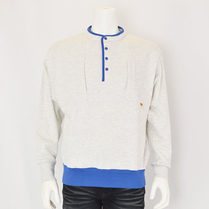 ヘンリーネック×Wポケットと配色カラーリングが目を引くデザインスウェット。