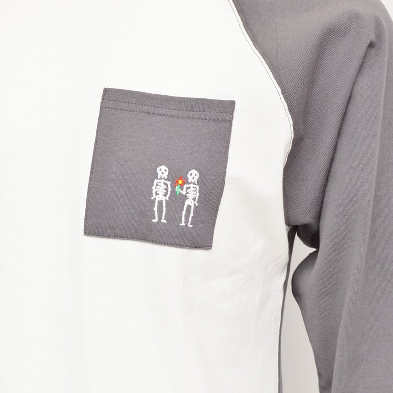 季節の変わり目、重ね着やインナーにも重宝するベーシックシルエットラグランベースボールT。背面が袖とカラーマッチの絶妙袖丈。胸ポケットにはボディーカラー毎に異なるワンポイント刺繍を施しています。