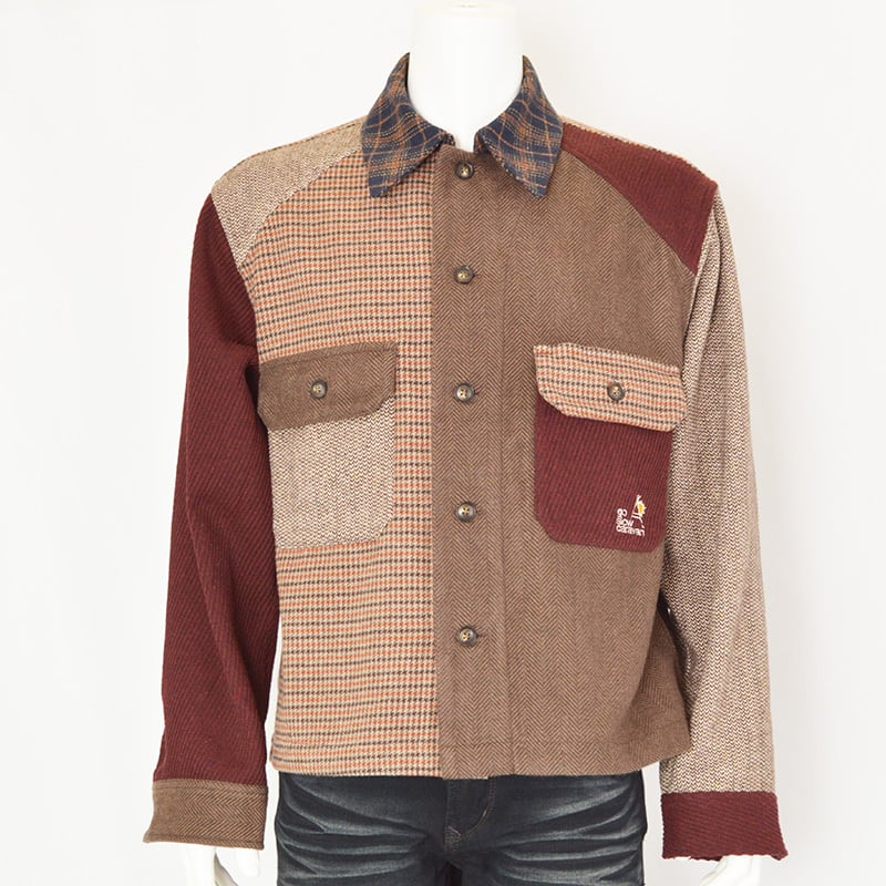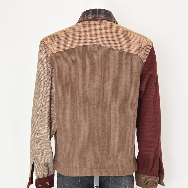 表情豊かで温かみのあるウールライク素材を数種類組み合わせたショート丈のCPOジャケット。
