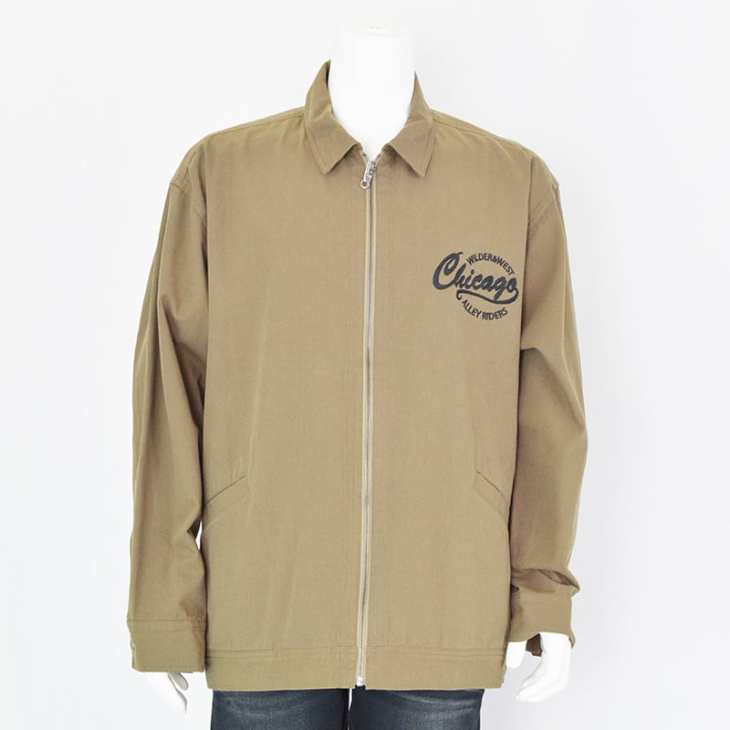 【大きいサイズ】|WILDER&WEST|ワイルダーアンドウエスト|キャンバスドリズラー刺繍ブルゾン|ベージュ