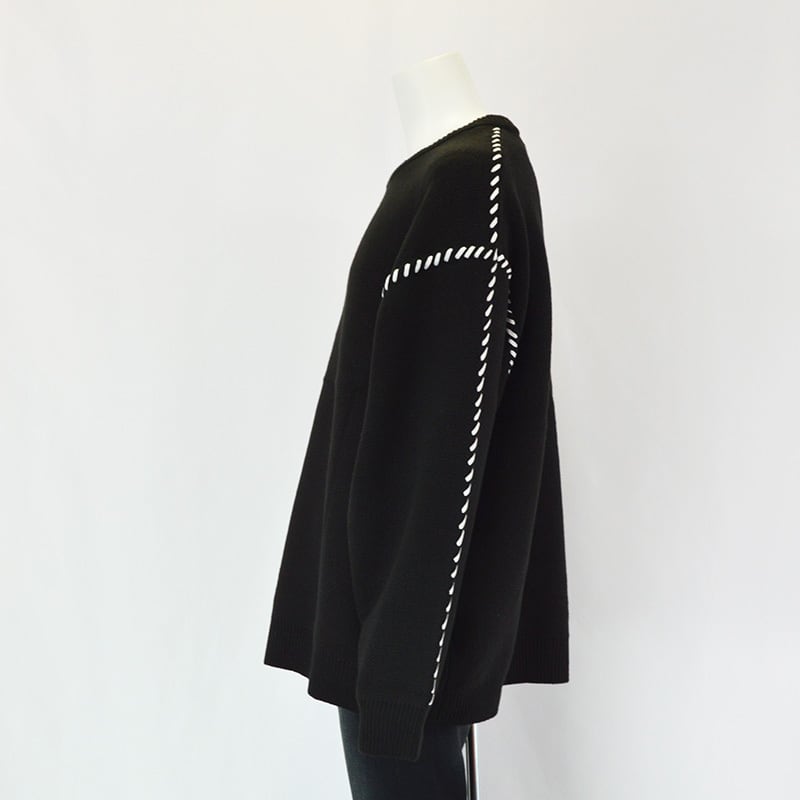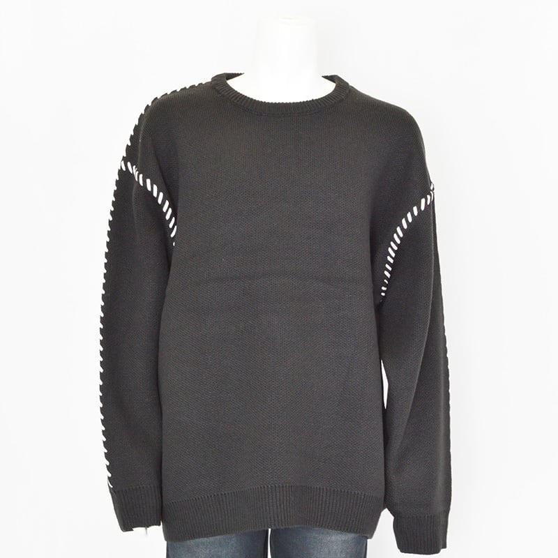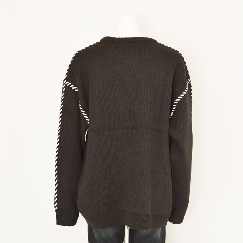 ハンドステッチ調のデザインが施された、表情豊かなクルーネックニット。