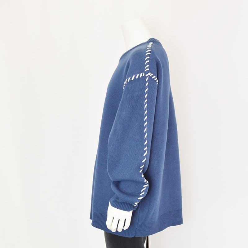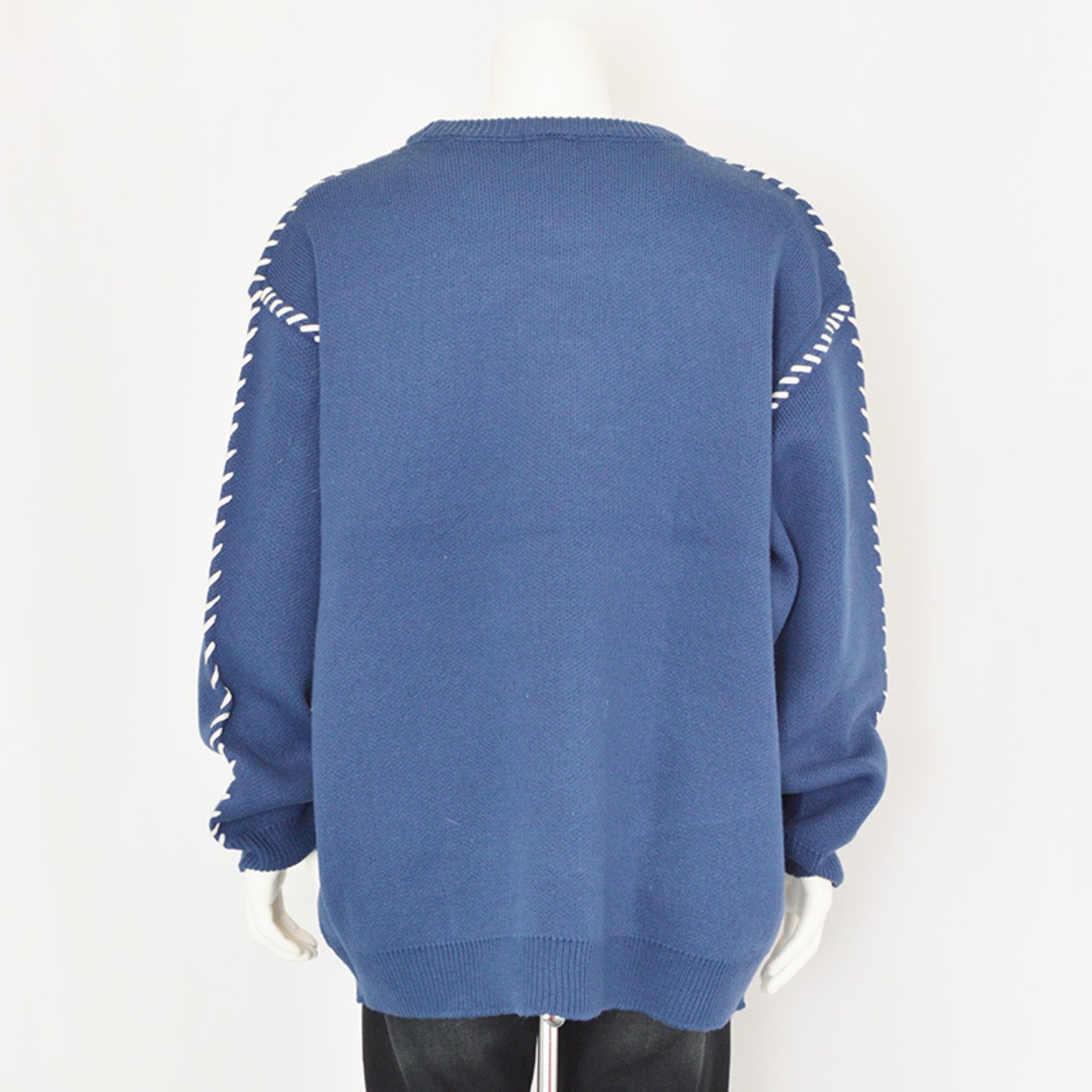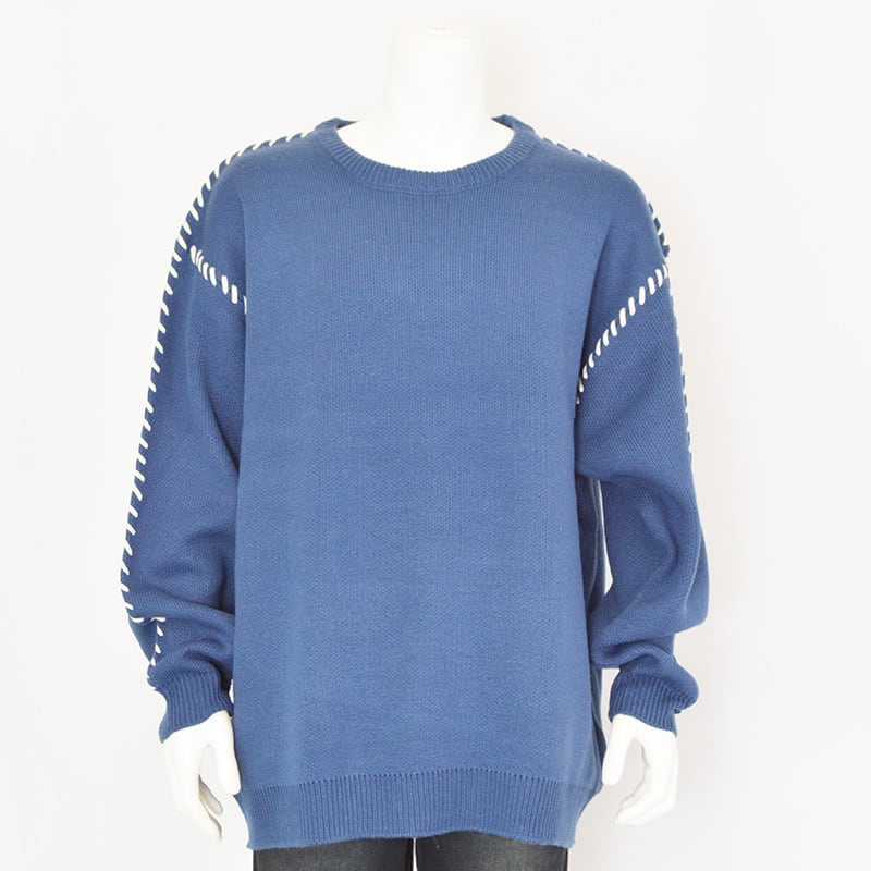 ハンドステッチ調のデザインが施された、表情豊かなクルーネックニット。