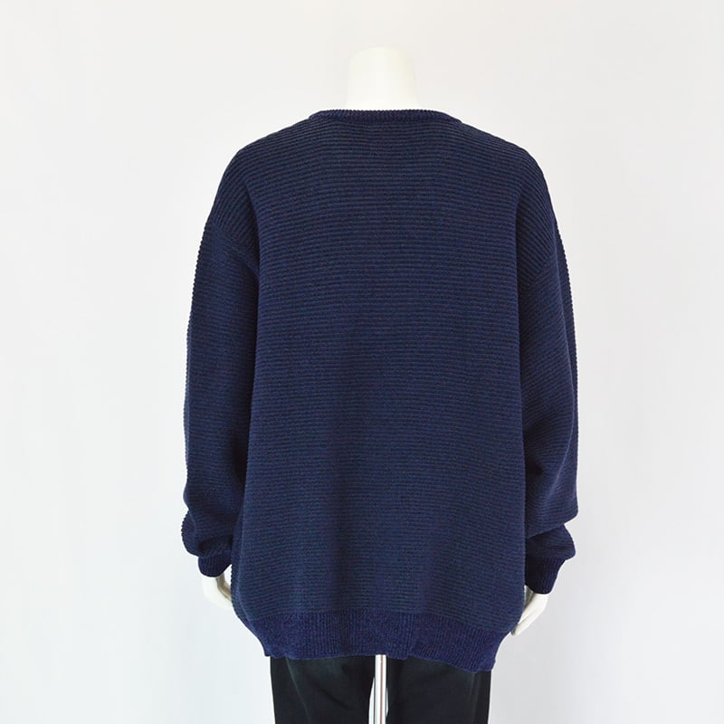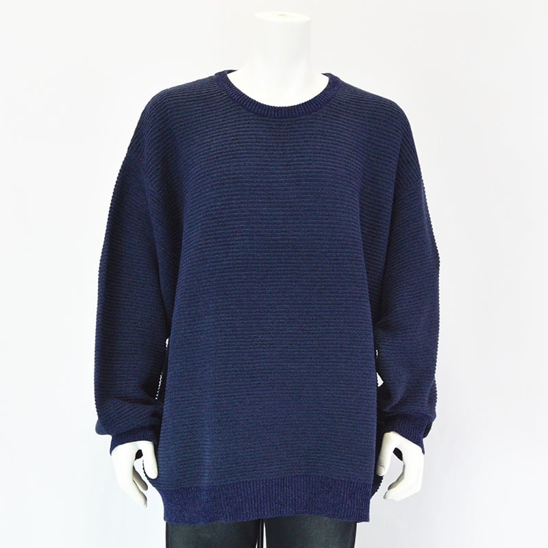 【大きいサイズ】|PLES|ワイルダーアンドウエスト|7Gガーター天竺クルーネックセーター|ネイビー