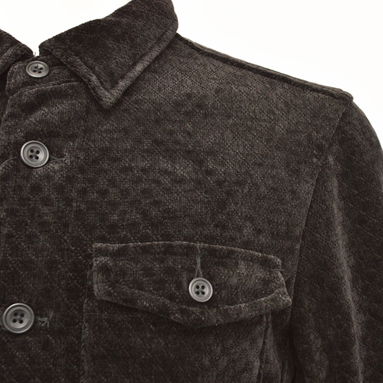胸にダブルパッチポケットを配したレギュラーカラーの新型ブルゾン。
