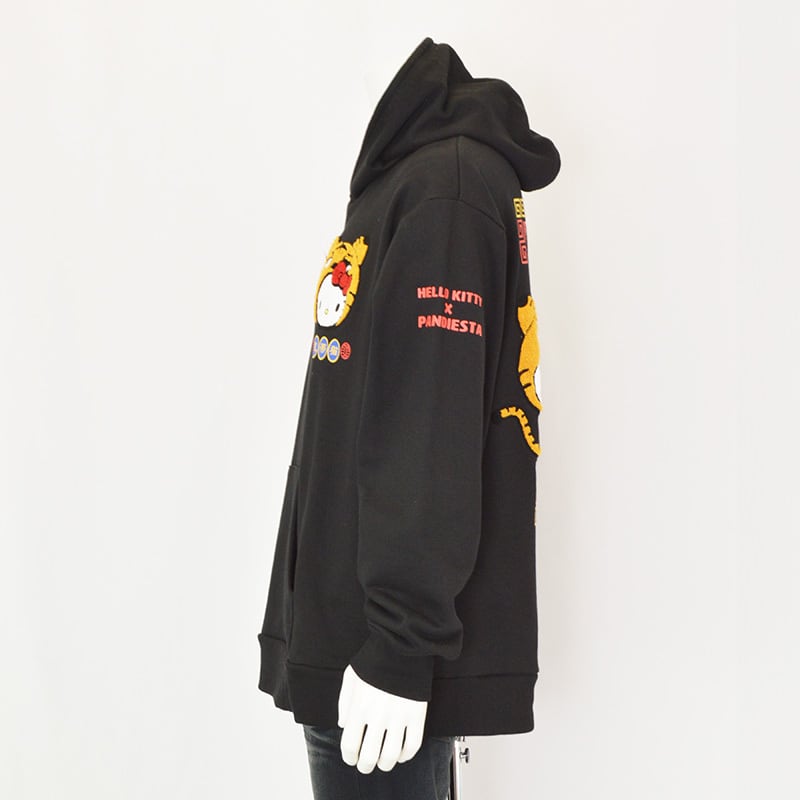 【大きいサイズ】|Hello Kitty×PANDIESTA JAPAN| “トラ着ぐるみ”サガラ刺繍入りプルパーカー|ブラック