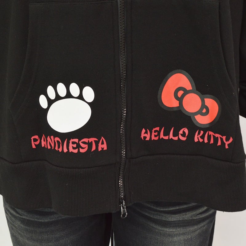 【大きいサイズ】|Hello Kitty×PANDIESTA JAPAN|“風神雷神”刺繍入りZIPパーカー|ブラック