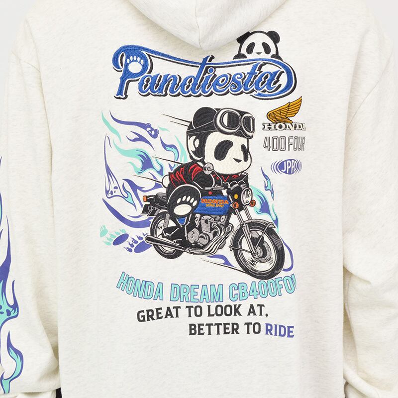 日本が世界に誇る至高の名車『CB400FOUR』をテーマに、オートバイが大好きなパンディエスタが疾走するシーンをデザインしました。