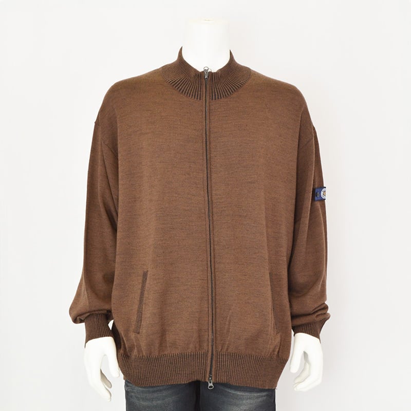 【大きいサイズ】G-stage|ジーステージ|プレーティング編みZIPセーター|ブラウン