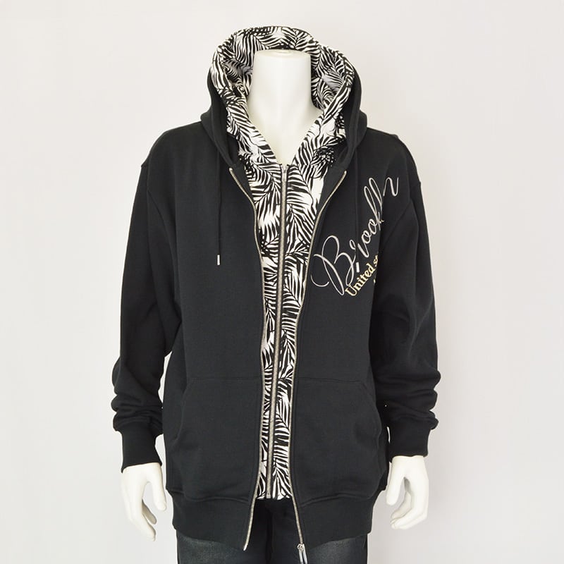 【大きいサイズ】|GLADIATE|グラディエイト|フェイクレイヤード フルジップパーカー|ブラック