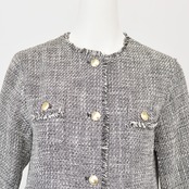 羽織るだけで品よく決まる、華やかツイードジャケット 表情豊かなツイード素材を使用したノーカラージャケット。 フロントやポケット部分に施したフリンジが、程よい華やかさをプラスします。 ノーカラーデザインのため、ブラウスやボウタイアイテムとも相性抜群。 セレモニーやオケージョンシーンはもちろん、 デニムと合わせたきれいめカジュアルにもおすすめです。