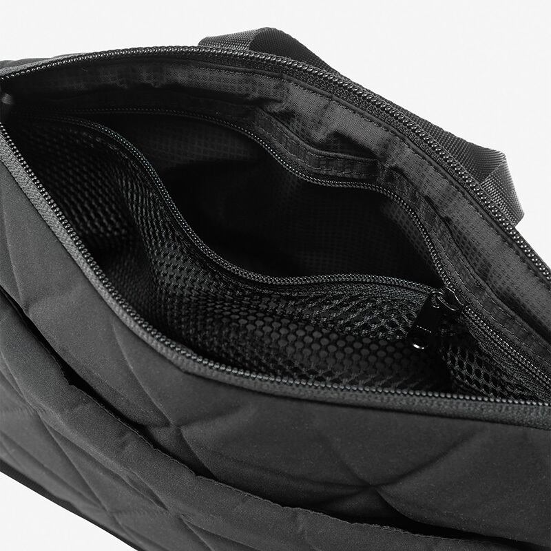 PC周辺機器の収納に便利なポーチ。衝撃を緩和するクッション内蔵のエンボス加工を採用。ショルダーストラップは取り外しが可能です。