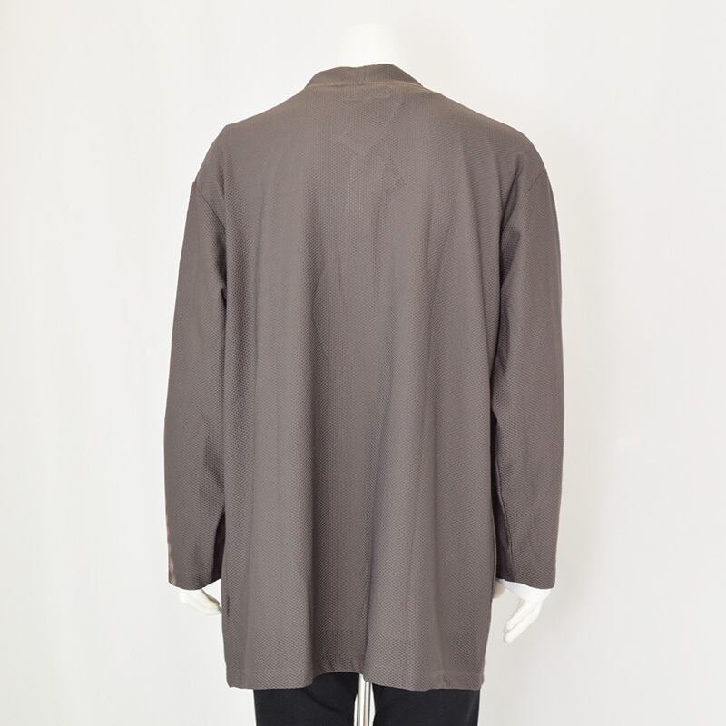 やや長めの裾丈で大人感があり、季節の変わり目にはライトアウターとしての着用も可能です。
