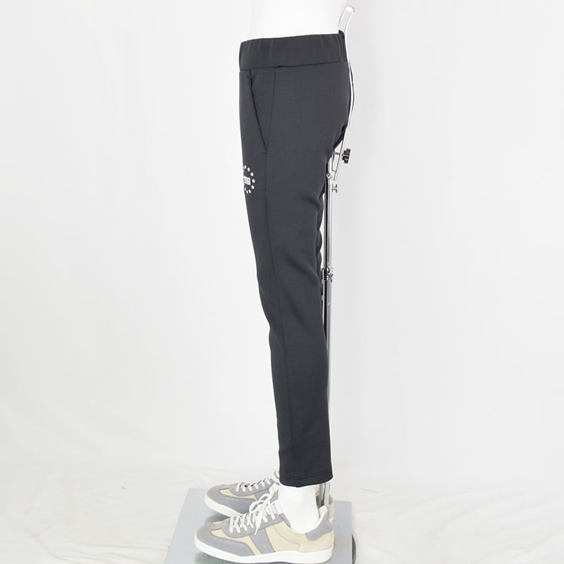 柔らかさとハリのバランスが良いダブルニット素材を使用したロングパンツ。左ももと右足後ろに施したゴシックロゴが、シンプルなシルエットにブランドらしい存在感をプラスします。