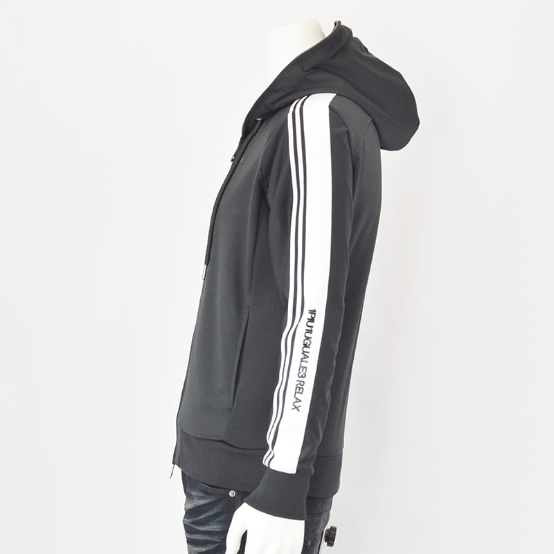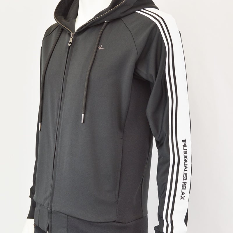 1PIU1UGUALE3 RELAX|ウノピゥウノウグァーレトレ リラックス|ジャージーラインフーディー|メンズ|ブラック